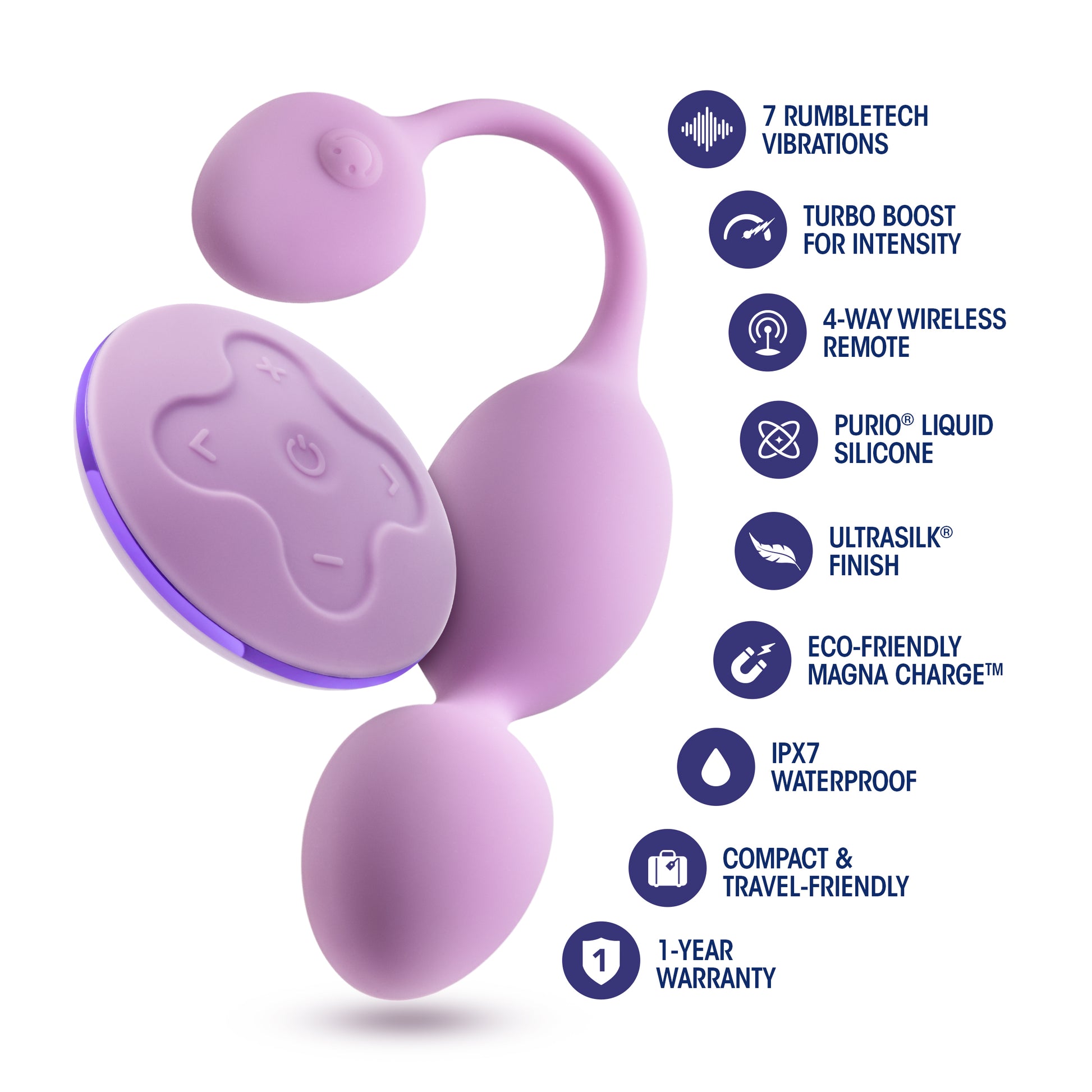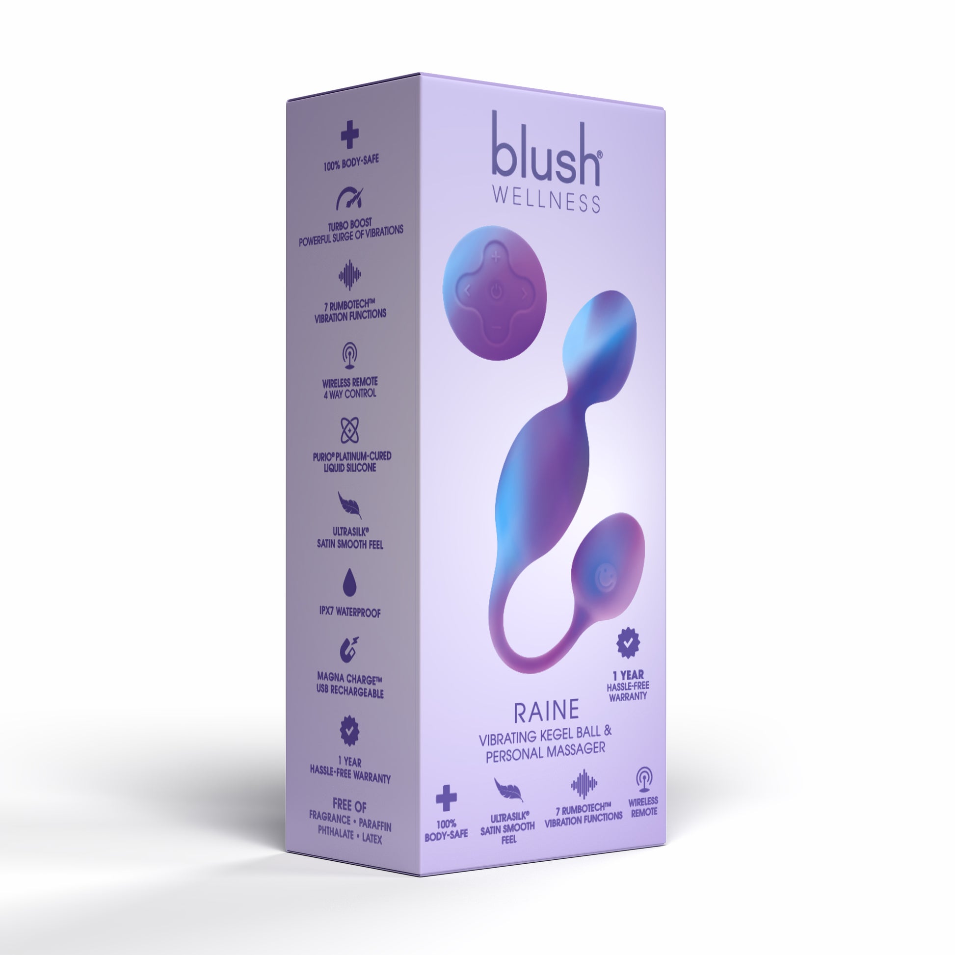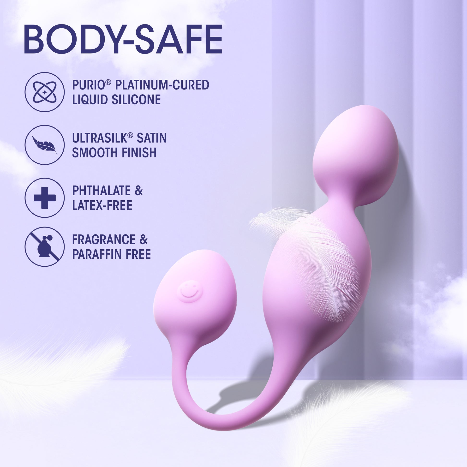 Embrace the power from within with Wellness Raine! This vibrating pelvic floor Kegel ball muscle trainer is designed for women, helping to train the pelvic muscles, supporting bladder control, better posture and increased sexual pleasure. Raine is lovingly crafted with pure platinum cured Purio® liquid silicone and enveloped in UltraSilk®, making it satin smooth to the touch, comfortable, and easy to use.