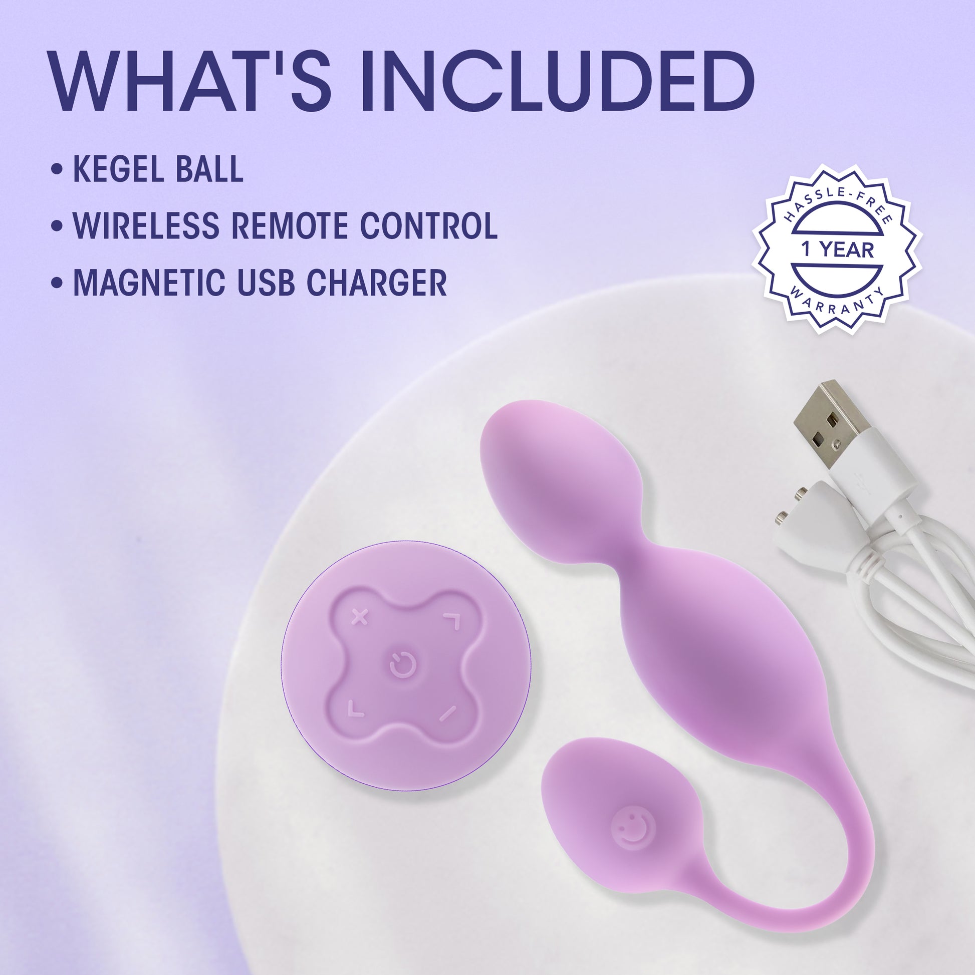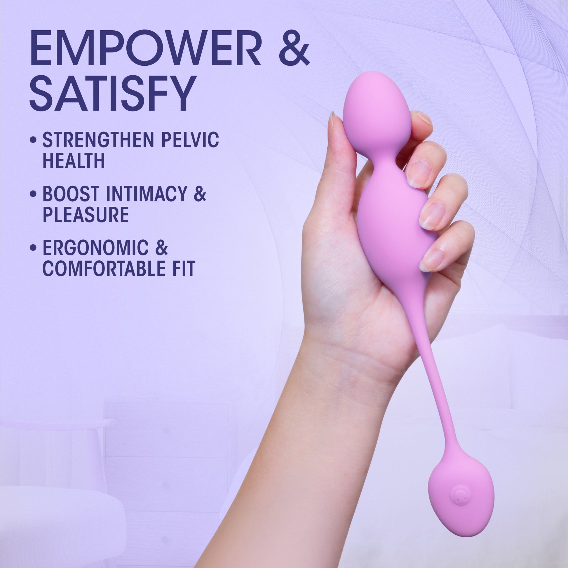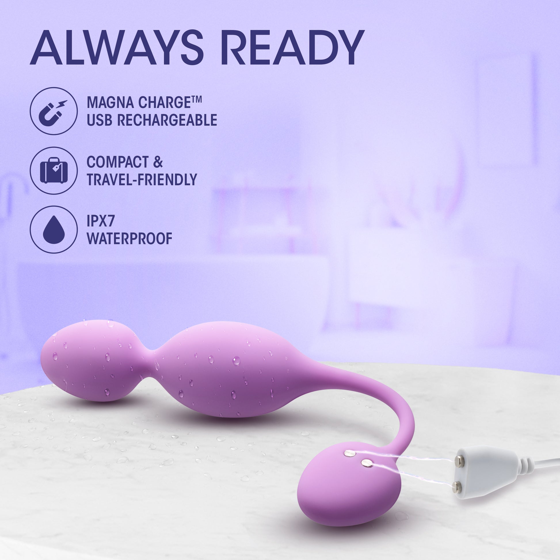 Embrace the power from within with Wellness Raine! This vibrating pelvic floor Kegel ball muscle trainer is designed for women, helping to train the pelvic muscles, supporting bladder control, better posture and increased sexual pleasure. Raine is lovingly crafted with pure platinum cured Purio® liquid silicone and enveloped in UltraSilk®, making it satin smooth to the touch, comfortable, and easy to use.