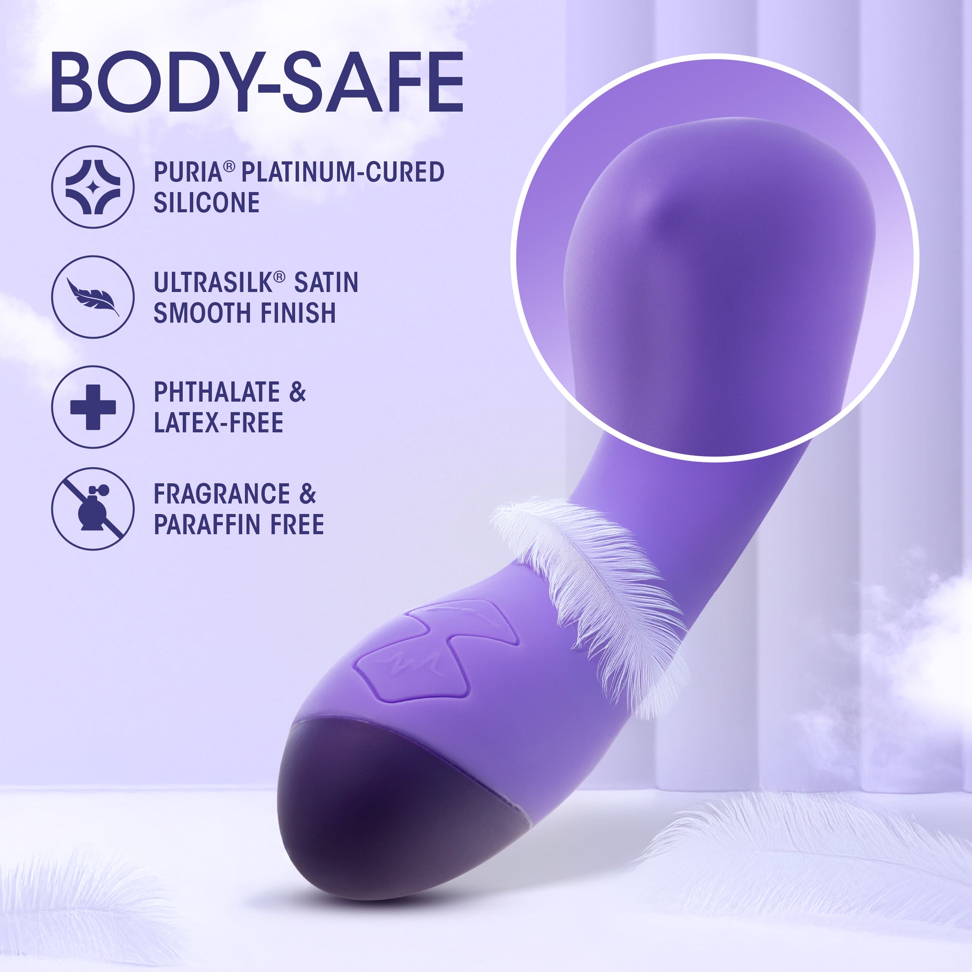 The Wellness G Ball Vibrator brings you satisfying and powerful vibrations, plus a tantalizing new technology! The G Motion technology located at the tip of the shaft creates a "come hither" motion that massages the G spot with a rolling ball. With 5 vibration speeds and 5 patterns, you'll find all the power you need. Ultrasilk ™ Smooth and made of Puria™ Platinum-Cured Silicone.