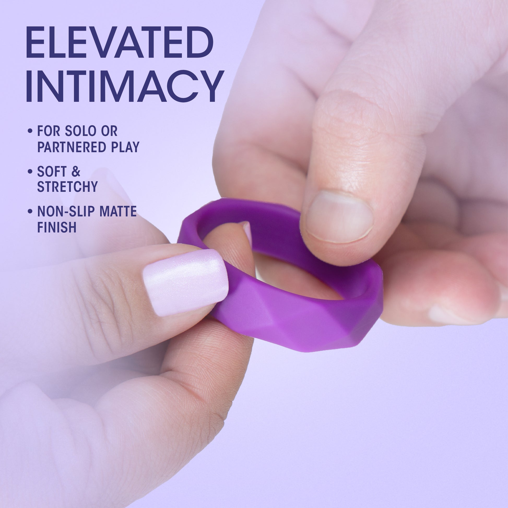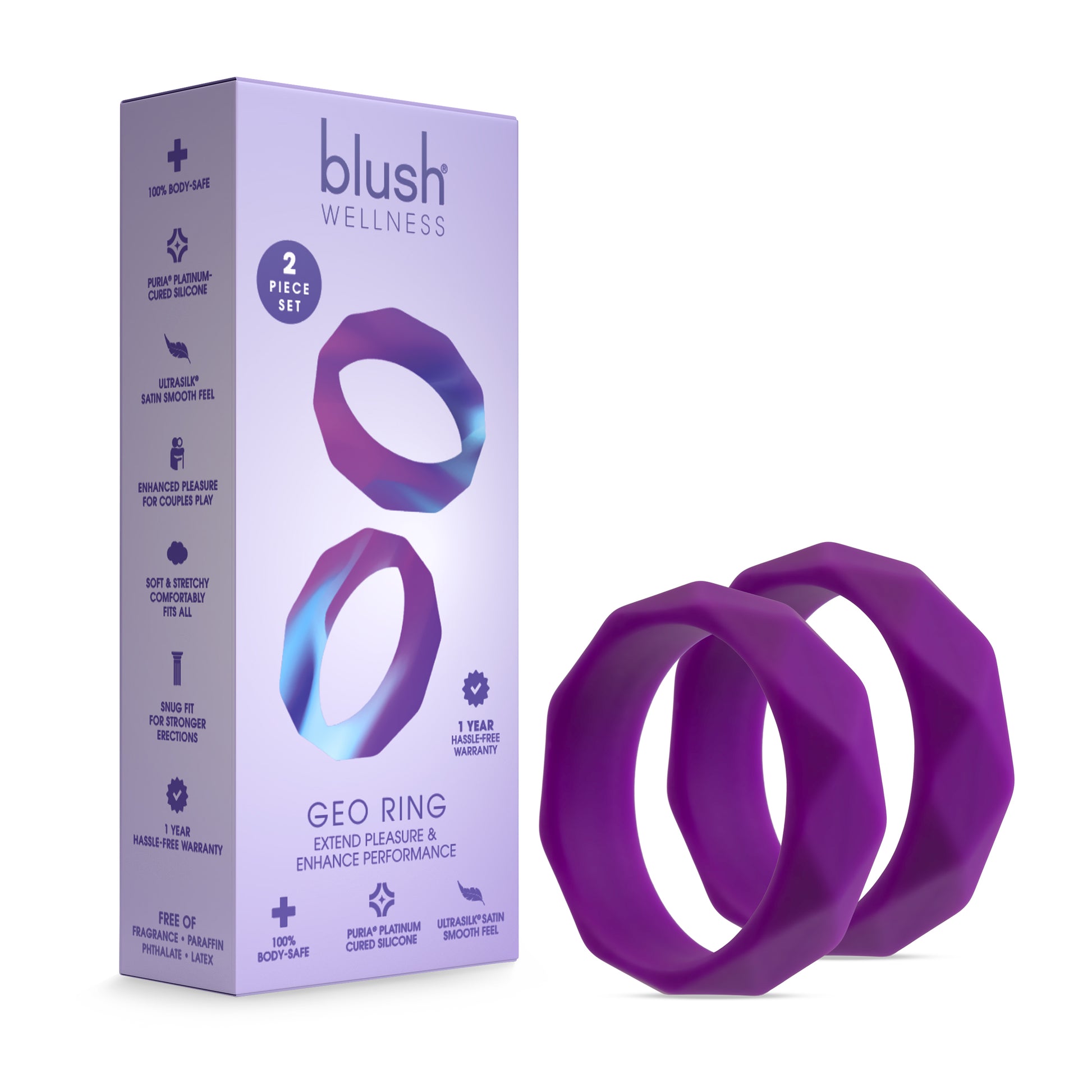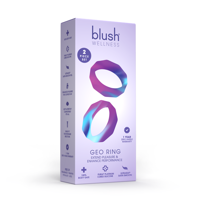 The Wellness Geo C Ring is a stylish way to extend your playtime. Sleek and stretchy, the geometric design is Ultrasilk Smooth and made of Puria Platinum-Cured Silicone. Body-Safe and Contains no Fragrances, Phthalates, Paraffins or Latex. The no-slip matte finish ensures stability and comfort! The Geo C Ring may be worn around the base of the shaft or underneath the balls: explore your favorite way to play!