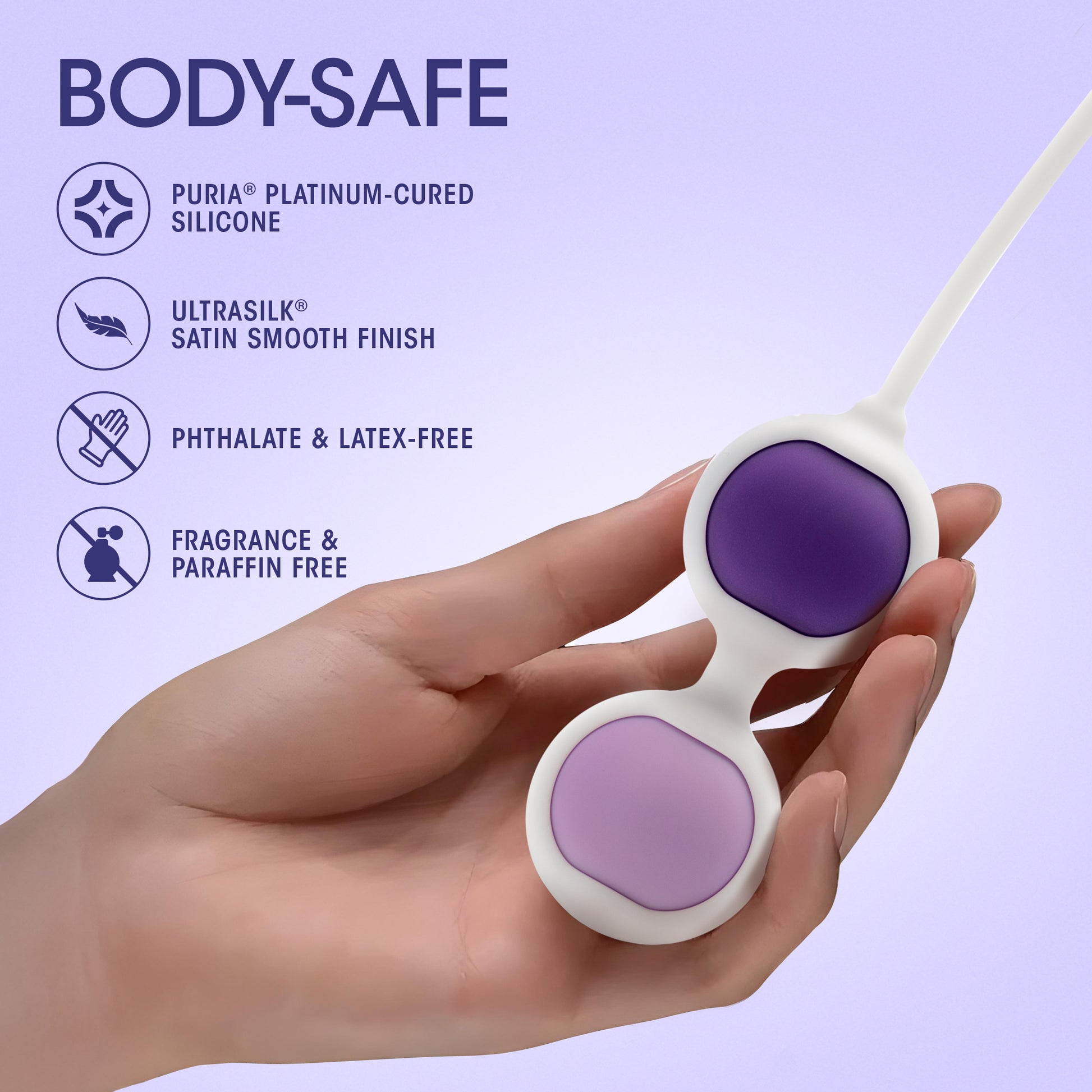 Wellness Kegel Balls help strengthen your pelvic floor for better control and more intense pleasure. Make them part of a regular kegel exercise routine, or wear them to heighten arousal during foreplay. All Wellness Kegel Balls are Ultrasilk ™ Smooth and made of Puria™ Platinum-Cured Silicone. Body-Safe and Contains no Fragrances, Phthalates, Paraffins or Latex
