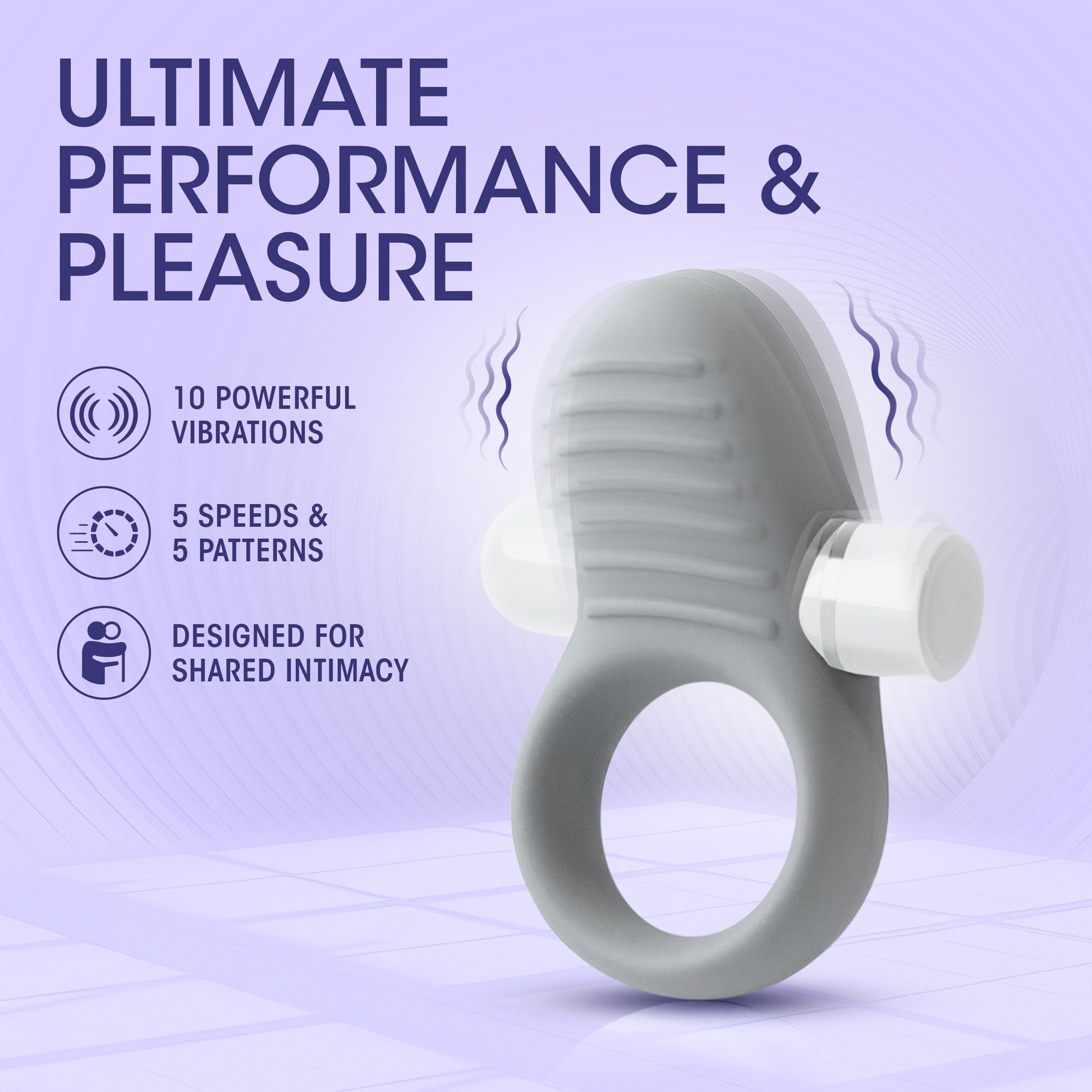 The Wellness - Vibrating Erection Ring's smooth silicone ridges and strong vibes are a delicious addition to your playtime! The stimulating textures will provide extra sensation to one partner, while both will enjoy the 10 vibration functions.